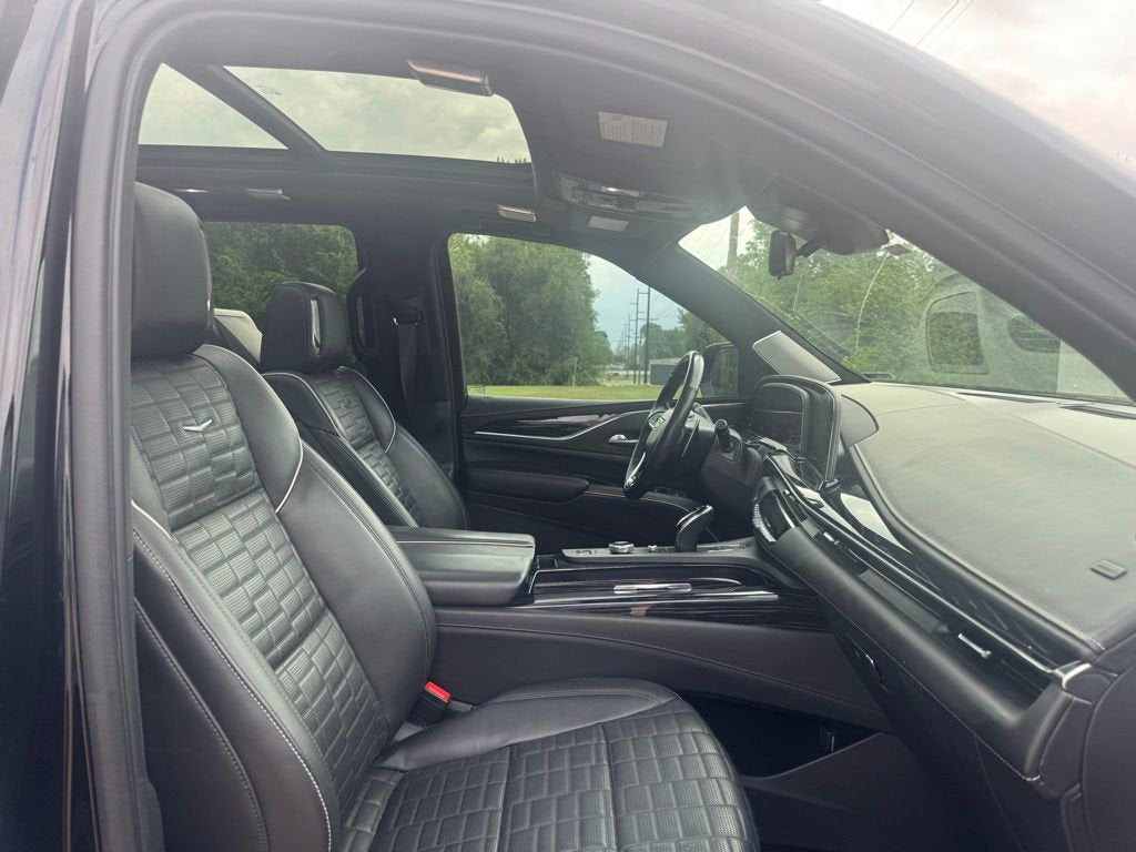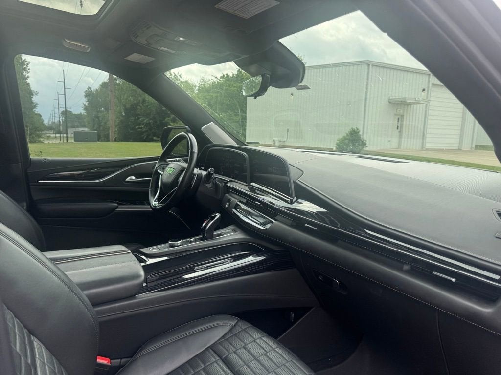 Black Raven V-Series 6.2L V8 Supercharged AWD CARFAX One-Owner. Bluetooth®, 16.9 Diagonal OLED Infotainment Screen, 2-Presets Memory For Driver Seat Adjuster, 3.23 Axle Ratio, 3rd row seats: split-bench, 4-Way Power Driver Lumbar Seat Adjuster, 4-Way Power Front Passenger Lumbar Seat Adjuster, 4-Wheel Disc Brakes, 8-Way Power Driver Seat Adjuster, 8-Way Power Front Passenger Seat Adjuster, A/V remote, ABS brakes, Active Noise Cancellation, Adaptive Cruise Control, Adaptive suspension, Air Conditioning, Air Ride Adaptive Suspension, AKG Studio Reference 36-Speaker Audio System, Alloy wheels, AM/FM radio: SiriusXM with 360L, Apple CarPlay/Android Auto, Audio memory, Auto High-beam Headlights, Auto tilt-away steering wheel, Auto-dimming door mirrors, Auto-dimming Rear-View mirror, Automatic Seat Belt Tightening, Automatic temperature control, Body-Color Door Handles, Brake assist, Bumpers: body-color, Compass, Delay-off headlights, Door auto-latch, Door Lock & Latch Shields, Driver door bin, Driver vanity mirror, Dual front impact airbags, Dual front side impact airbags, Electronic Limited-Slip Differential, Electronic Stability Control, Emergency communication system: OnStar and Cadillac connected services capable, Enhanced Automatic Emergency Braking, Enhanced Automatic Parking Assist, Exterior Parking Camera Rear, Floor Console w/Covered Storage, Four wheel independent suspension, Front anti-roll bar, Front Auxiliary 12-volt Power Outlet, Front Bucket Seats, Front Center Armrest w/Storage, Front dual zone A/C, Front reading lights, Full Semi-Aniline Leather Seat Trim, Fully automatic headlights, Garage door transmitter, Genuine wood console insert, Genuine wood dashboard insert, Genuine wood door panel insert, Glass Breakage Sensor, HD Radio, Headphones, Heads-Up Display, Heated & Ventilated Driver & Front Passenger Seats, Heated door mirrors, Heated Driver & Front Passenger Seats, Heated front seats, Heated rear seats, Heated steering wheel, Hitch Guidance w/Hitch View, Illuminated entry, Illuminating Front & Rear Sill Plates, Integrated Trailer Brake Controller, Leather steering wheel, Low tire pressure warning, Magnetic Ride Control Suspension, Memory seat, Navigation System, Night vision lights, Not Equipped w/2nd Row Express-Up Window Control, Not Equipped w/Super Cruise, Not Equipped w/Super Cruise (00U), Occupant sensing airbag, Outside temperature display, Overhead airbag, Overhead console, Panic alarm, Passenger door bin, Passenger vanity mirror, Platinum Interior Trim, Power door mirrors, Power driver seat, Power Liftgate, Power Lumbar Massage Driver Seat, Power Lumbar Massage Front Passenger Seat, Power moonroof, Power Panoramic Tilt-Sliding Sunroof, Power passenger seat, Power steering, Power windows, Power-Retractable Assist Steps, Preferred Equipment Group 1SD, Radio data system, Radio: AM/FM w/Navigation, Rain sensing wipers, Rear air conditioning, Rear anti-roll bar, Rear audio controls, Rear Camera Mirror, Rear Camera Mirror Washer, Rear Cross Traffic Alert, Rear reading lights, Rear Seat Entertainment System, Rear window defroster, Rear window wiper, Reconfigurable Full-Color Head-Up Display, Remote keyless entry, Reverse Automatic Braking, Security system, SiriusXM w/360L, Smart Trailer Integration Indicator, Soft Closing Front & Rear Doors, Speed control, Split folding rear seat, Spoiler, Steering wheel memory, Steering wheel mounted audio controls, Super Cruise, Tachometer, Teen Driver, Telescoping steering wheel, Theft-Deterrent Alarm System, Tilt steering wheel, Touring Package, Traction control, Trailer Side Blind Zone Alert, Trip computer, Turn signal indicator mirrors, Variably intermittent wipers, Vehicle Inclination Sensor, Vehicle Interior Movement Sensor, Ventilated front seats, Voltmeter, Wheels: 22 18-Spoke Alloy, Wireless Apple CarPlay/Wireless Android Auto.