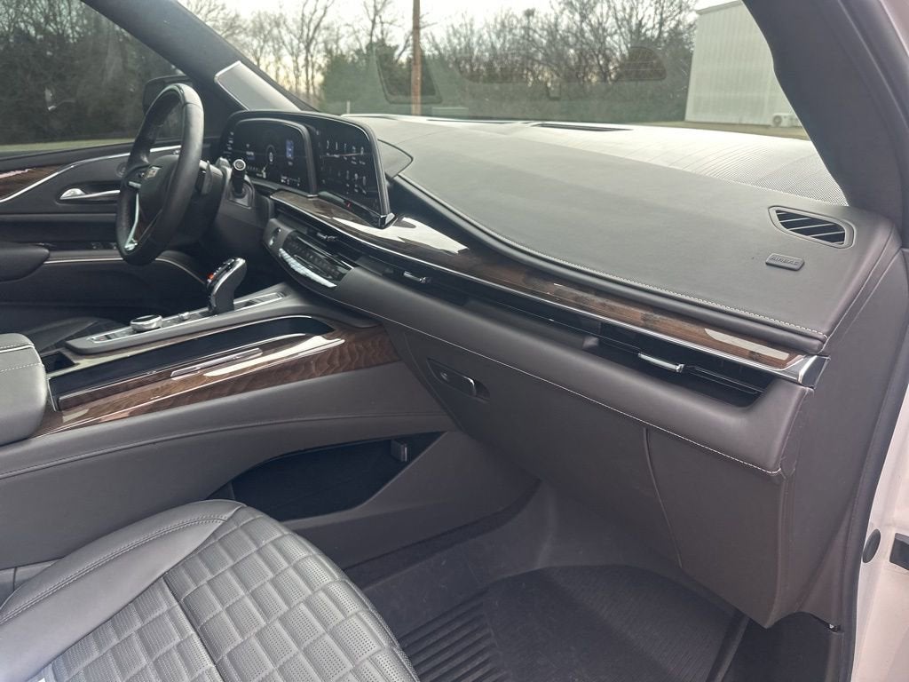 Crystal White Tricoat Premium Luxury Platinum 6.2L V8 AWD Certified. CARFAX One-Owner. Bluetooth®, 16.9 Diagonal OLED Infotainment Screen, 2-Presets Memory For Driver Seat Adjuster, 3.23 Axle Ratio, 3rd row seats: split-bench, 4-Way Power Driver Lumbar Seat Adjuster, 4-Way Power Front Passenger Lumbar Seat Adjuster, 4-Wheel Disc Brakes, 8-Way Power Driver Seat Adjuster, 8-Way Power Front Passenger Seat Adjuster, A/V remote, ABS brakes, Adaptive Cruise Control, Air Conditioning, Air Ride Adaptive Suspension, AKG Studio Reference 36-Speaker Audio System, All-Weather Floor Liner Package (LPO), AM/FM radio: SiriusXM with 360L, Apple CarPlay/Android Auto, Audio memory, Auto tilt-away steering wheel, Auto-dimming door mirrors, Auto-dimming Rear-View mirror, Automatic Seat Belt Tightening, Automatic temperature control, Compass, Cooled Console w/Covered Storage, Door auto-latch, Door Lock & Latch Shields, Dual front impact airbags, Dual front side impact airbags, Electronic Limited-Slip Differential, Electronic Stability Control, Emergency communication system: OnStar and Cadillac connected services capable, Enhanced Automatic Emergency Braking, Enhanced Automatic Parking Assist, Exterior Parking Camera Rear, Floor Console w/Covered Storage, Four wheel independent suspension, Front anti-roll bar, Front Auxiliary 12-volt Power Outlet, Front dual zone A/C, Full Semi-Aniline Leather Seat Trim, Fully automatic headlights, Genuine wood console insert, Glass Breakage Sensor, HD Radio, Headphones, Heads-Up Display, Heated & Ventilated Driver & Front Passenger Seats, Heated rear seats, Hitch Guidance w/Hitch View, Illuminating Front & Rear Sill Plates, Integrated Trailer Brake Controller, Low tire pressure warning, Magnetic Ride Control Suspension, Memory seat, Navigation System, Occupant sensing airbag, Overhead airbag, Overhead console, Passenger vanity mirror, Platinum Interior Trim, Power driver seat, Power Liftgate, Power Lumbar Massage Driver Seat, Power Lumbar Massage Front Passenger Seat, Power moonroof, Power Panoramic Tilt-Sliding Sunroof, Power passenger seat, Power steering, Power windows, Power-Retractable Assist Steps, Preferred Equipment Group 1SG, Radio data system, Radio: AM/FM w/Navigation, Rear air conditioning, Rear anti-roll bar, Rear audio controls, Rear Camera Mirror, Rear Camera Mirror Washer, Rear Cross Traffic Alert, Rear Seat Entertainment System, Rear window defroster, Reconfigurable Full-Color Head-Up Display, Remote keyless entry, Reverse Automatic Braking, Running Board Assist Steps, Security system, SiriusXM w/360L, Smart Trailer Integration Indicator, Soft Closing Front & Rear Doors, Steering wheel memory, Steering wheel mounted audio controls, Teen Driver, Telescoping steering wheel, Theft-Deterrent Alarm System, Tilt steering wheel, Touring Package, Traction control, Trailer Side Blind Zone Alert, Variably intermittent wipers, Vehicle Inclination Sensor, Vehicle Interior Movement Sensor, Wheel Locks, Wheels: 22 10-Spoke Polished Alloy, Wireless Apple CarPlay/Wireless Android Auto.