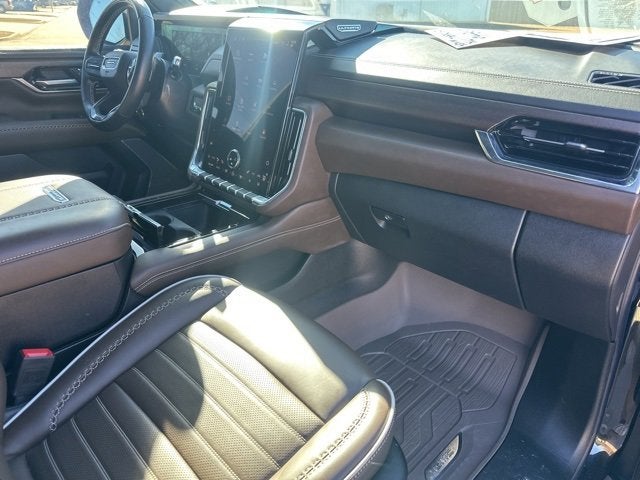 Onyx Black Denali Ultimate EcoTec3 6.2L V8 4WD CARFAX One-Owner. Bluetooth®, 15 Diagonal Multi-Color Head-Up Display, 18 Speakers, 3.23 Rear Axle Ratio, 3rd row seats: split-bench, 4-Spoke Leather-Wrapped Steering Wheel, 4-Way Power Driver Lumbar Seat Adjuster, 4-Way Power Front Passenger Lumbar Seat Adjuster, 4-Wheel Disc Brakes, 8 Diagonal Rear Touchscreen Climate Control, ABS brakes, Adaptive suspension, Advanced Security Package, Advanced Technology Package, Air Conditioning, Air Ride Adaptive Suspension, Alloy wheels, AM/FM radio: SiriusXM with 360L, Apple CarPlay/Android Auto, Audio memory, Auto High-beam Headlights, Auto-dimming door mirrors, Auto-dimming Rear-View mirror, Auto-leveling suspension, Automatic temperature control, AutoSense Hands-Free Power Liftgate, Bodyside moldings, Brake assist, Bumpers: body-color, Compass, Delay-off headlights, Driver 2-Way Power Upper Shoulder, Driver Attention Assist, Driver door bin, Driver Power Massage Seat, Driver vanity mirror, Dual Exhaust System, Dual front impact airbags, Dual front side impact airbags, Dual-Pane Panoramic Power Sunroof, Electronic Stability Control, Emergency communication system: OnStar and GMC connected services capable, Exterior Parking Camera Rear, Extra Capacity Cooling System, Four wheel independent suspension, Front anti-roll bar, Front Bucket Seats, Front Center Armrest, Front dual zone A/C, Front fog lights, Front Passenger 2-Way Power Upper Shoulder, Front Passenger Power Massage Seat, Front reading lights, Full Grain Leather Seats, Fully automatic headlights, Garage door transmitter, Glass Breakage Sensor, Headphones, Heads-Up Display, Heated door mirrors, Heated front seats, Heated rear seats, Heated steering wheel, Hill Descent Control, Hitch View, Illuminated entry, Integrated Trailer Brake Controller, Leather steering wheel, Low tire pressure warning, Magnetic Ride Control Suspension, Max Trailering Package, Memory seat, Navigation system: GMC Connected Navigation, Occupant sensing airbag, Outside temperature display, Overhead airbag, Overhead console, Panic alarm, Passenger door bin, Passenger vanity mirror, Performance Air Intake System, Power door mirrors, Power driver seat, Power Liftgate, Power moonroof, Power passenger seat, Power Release 2nd Row Bucket Seats, Power steering, Power windows, Power-Retractable Assist Steps, Preferred Equipment Group 5SB, Rain sensing wipers, Rear air conditioning, Rear anti-roll bar, Rear audio controls, Rear reading lights, Rear Seat Media System, Rear window defroster, Rear window wiper, Remote keyless entry, Security system, Smart Trailer Integration Indicator, Speed control, Speed-sensing steering, Split folding rear seat, Spoiler, Steering wheel memory, Steering wheel mounted audio controls, Super Cruise, Tachometer, Telescoping steering wheel, Theft-Deterrent Alarm System, Tilt steering wheel, Traction control, Trip computer, Turn signal indicator mirrors, Vader Bodyside Moldings, Variably intermittent wipers, Vehicle Inclination Sensor, Vehicle Interior Movement Sensor, Ventilated front seats, Voltmeter.